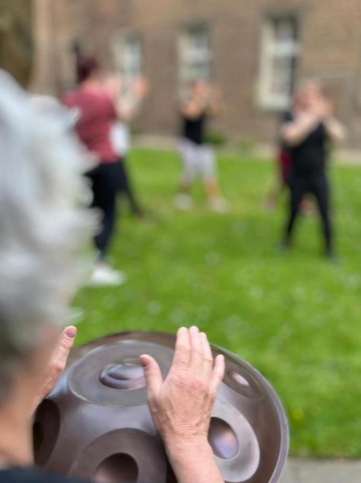 Ich bin mit Handpan und Klangschalen dabei.